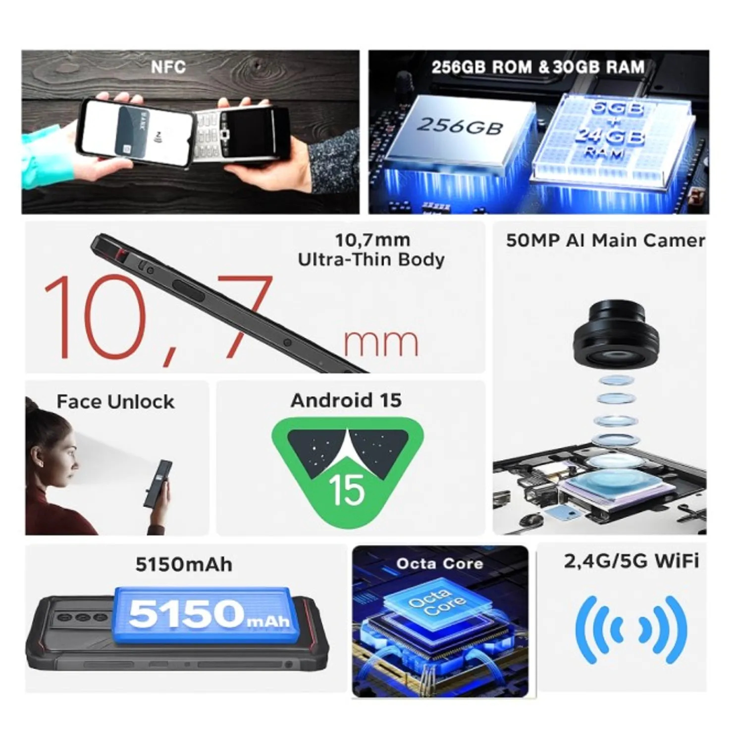 Doogee Blade 10 Pro, zorlu saha şartlarında çalışan profesyoneller için tasarlandı. IP68/IP69K ve MIL-STD-810H sertifikaları sayesinde suya, toza ve darbeye karşı tam dayanıklılık sunar.